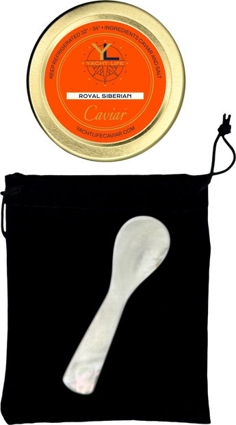 Each set arrives complete with a velvet pouch and a mother of pearl spoon, the only utensil worthy of your caviar experience. Your caviar is carefully packed on ice in an insulated box to ensure peak freshness.